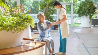 Young Chinese doctor examining senior woman
