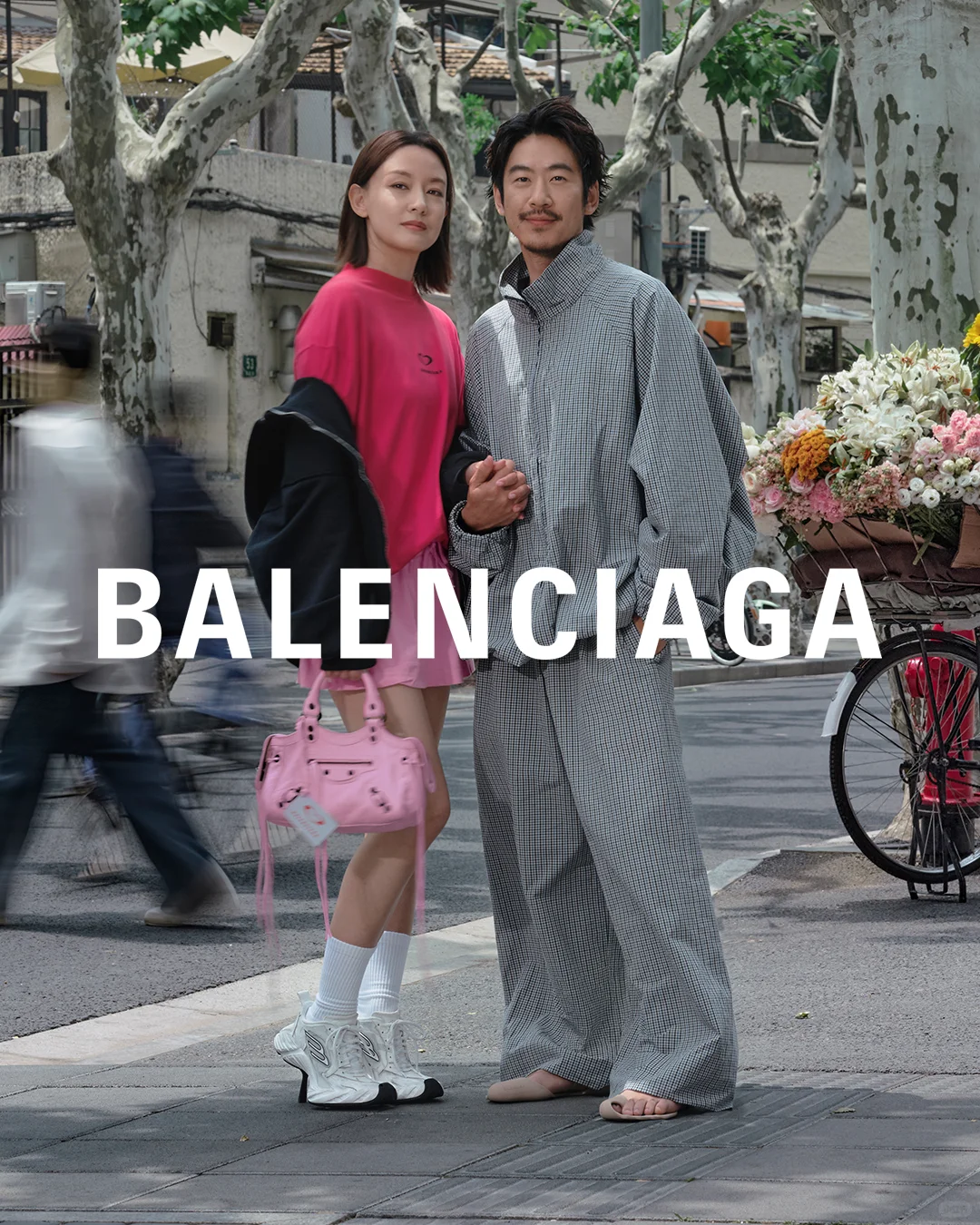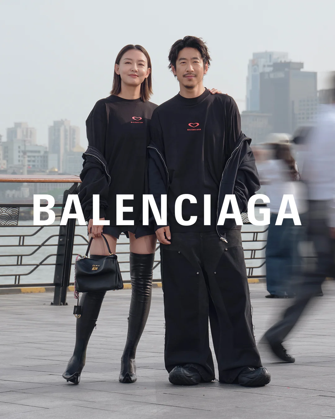 Balenciaga отметила праздник лимитированной серией, снятой фотографом Фэн Ли в Шанхае. В кадре — женатая пара актеров Чжоу Цици и Цзян Цилинь в образах из осенней коллекции.