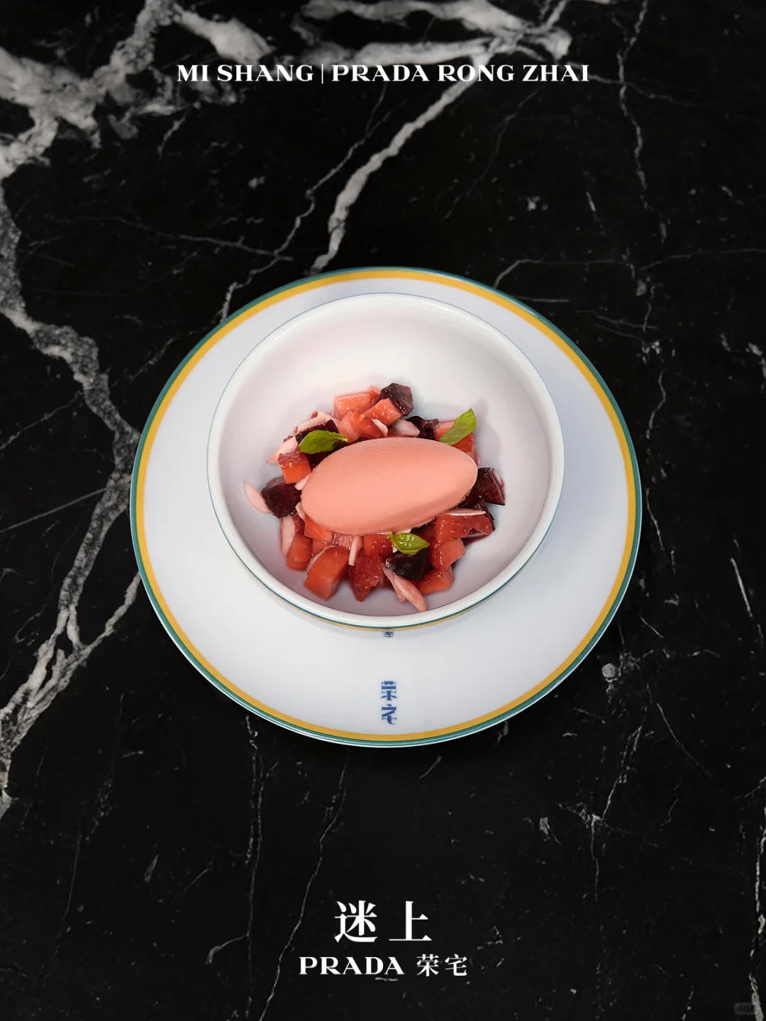 Prada также организовала в Шанхае тематическое меню в ресторане виллы Rong Zhai. Это площадка, восстановленная в стиле старинной виллы, ее курирует режиссер Вонг Кар-Вай. Специальное вечернее меню (22–24 и 29–31 августа) от шефа Риккардо Ла Перна сочетает итальянские ингредиенты с восточными акцентами: моцарелла с томатным экстрактом, морепродукты, лобстер, мраморная говядина с органическими овощами и десерт.