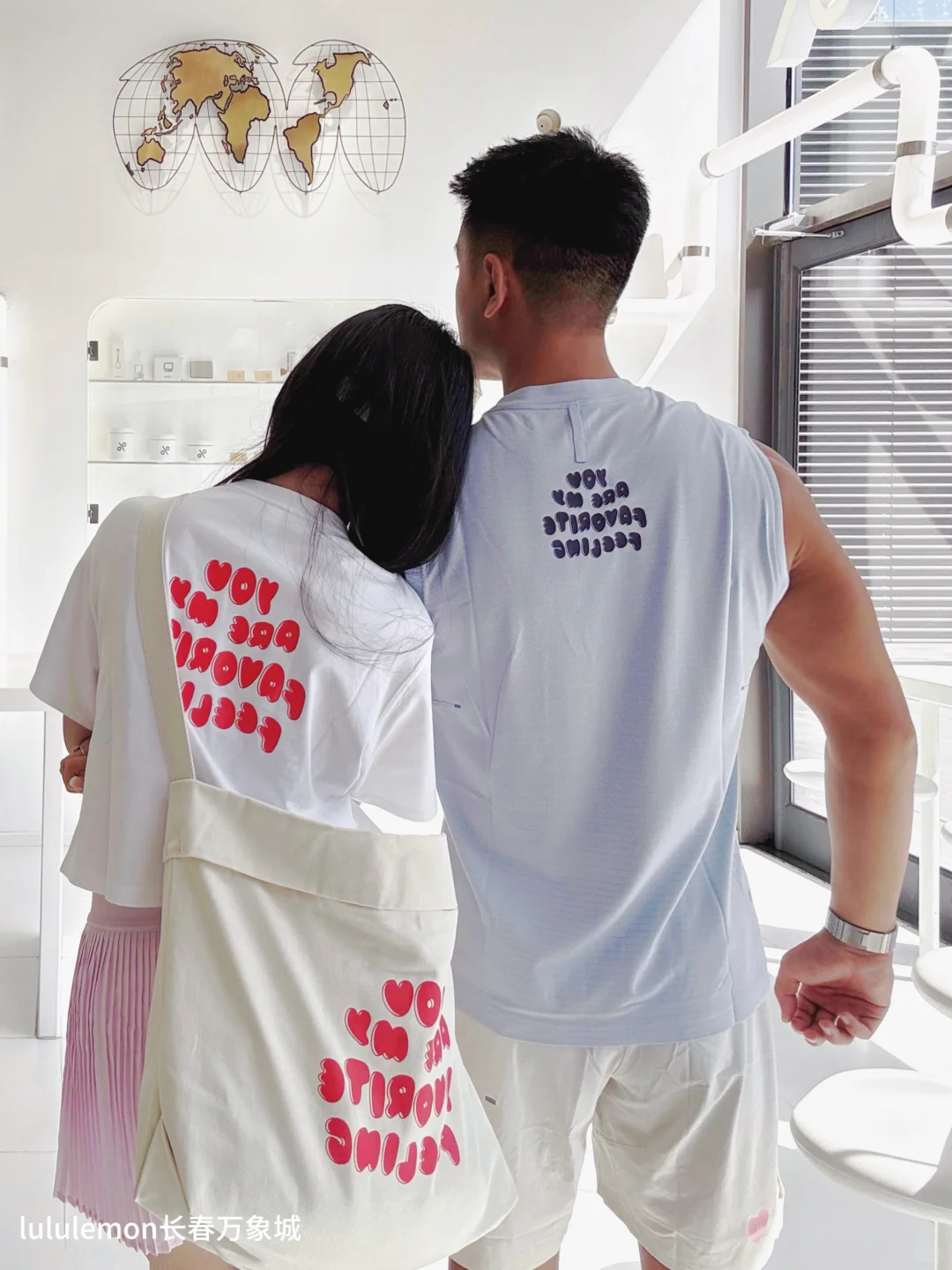 Lululemon выпустил капсульную коллекцию с сердцами и нежными фразами. В нее вошли комплекты для мужчин и женщин. Они объединены общей эстетикой и цветовыми акцентами, что сразу выдает в них парную коллекцию.