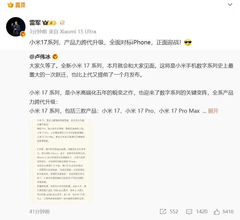 Компания Xiaomi пропустила 16-й номер и назвала следующую флагманскую серию смартфонов Xiaomi 17, чтобы составить конкуренцию iPhone 17. Об этом сообщил глава компании Лэй Цзюнь. Xiaomi 17 выйдет в сентябре, на месяц раньше, чем Xiaomi 15 в прошлом году.