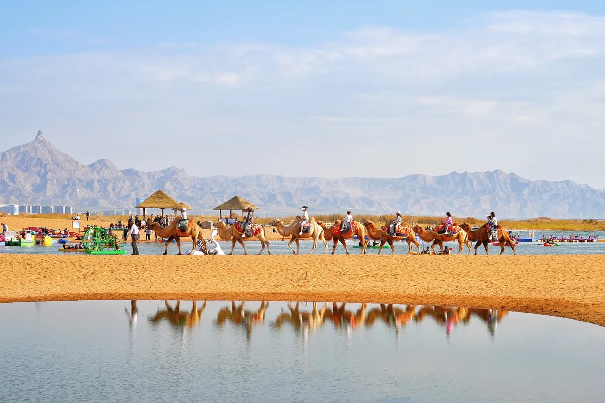 Искусственное озеро Ухай было создано на реке Хуанхэ в 2013 году. Его площадь — 118 кв. км, что в 18,5 раза превышает площадь озера Сиху в Ханчжоу (провинция Чжэцзян). Вдоль западного берега озера простирается пустыня Улан-Бух. Пассажиры могут сойти с лодки, пересесть на верблюда и прокатиться по золотистым пескам или даже провести ночь в палатке под звездным небом.