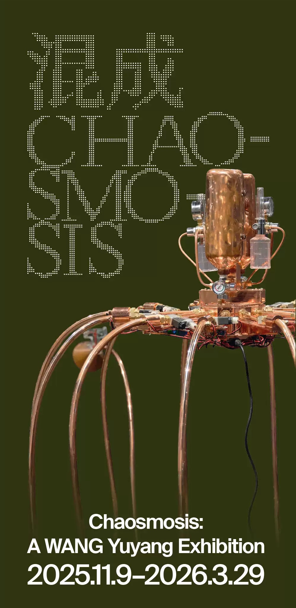 Современный китайский художник Ван Юйян работает с различными техниками. В его произведениях используются ИИ, виртуальная реальность, автономное вождение, робототехника, геологоразведка, синтетическая биология, интернет вещей. Chaosmosis — это его первая персональная выставка в Пекине. Темы выставки переплетают искусственную жизнь с миром природы.