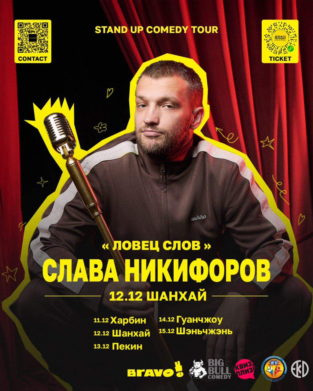 - По всем вопросам: @bravocomedy (Телеграм) или bravo_standup (WeChat)
