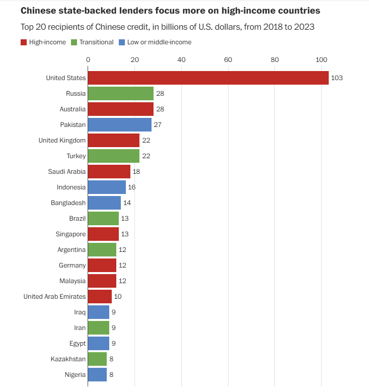 — США стали крупнейшим получателем китайских кредитов. С 2000 по 2023 годы США получили более $200 млрд китайского финансирования для почти 2,5 тыс. проектов. Более 50% суммы было предоставлено с 2018 года. Это следует из отчета исследовательского центра AidData при американском Колледже Вильгельма и Марии. В документе говорится, что китайские госбанки инвестировали в строительство терминалов в аэропортах Нью-Йорка и Лос-Анджелеса, объектов СПГ в Техасе и Луизиане, дата-центров в Вирджинии. Они также предоставляли кредитные линии корпорациям Amazon, Tesla, Boeing, Disney и другим.