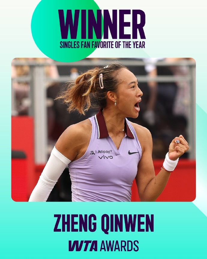 — Женская теннисная ассоциация (WTA) назвала китаянку Чжэн Циньвэнь самой популярной теннисисткой года в одиночном разряде. Чжэн удостаивается этой награды второй год подряд. С момента триумфального дебюта в 2022 году спортсменка каждый год получает официальные награды WTA.