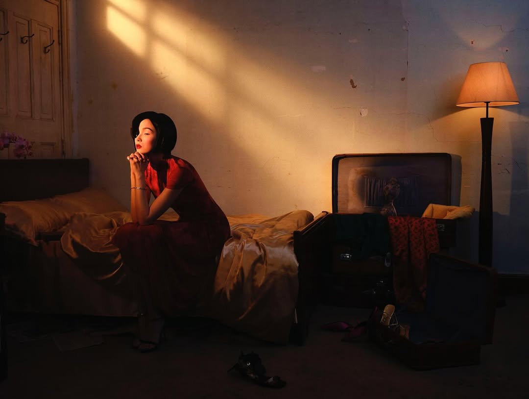 Свет всегда мягкий и теплый, создающий эффект ретросъемки, что придает фотографиям определенную сюрреалистическую ностальгию.