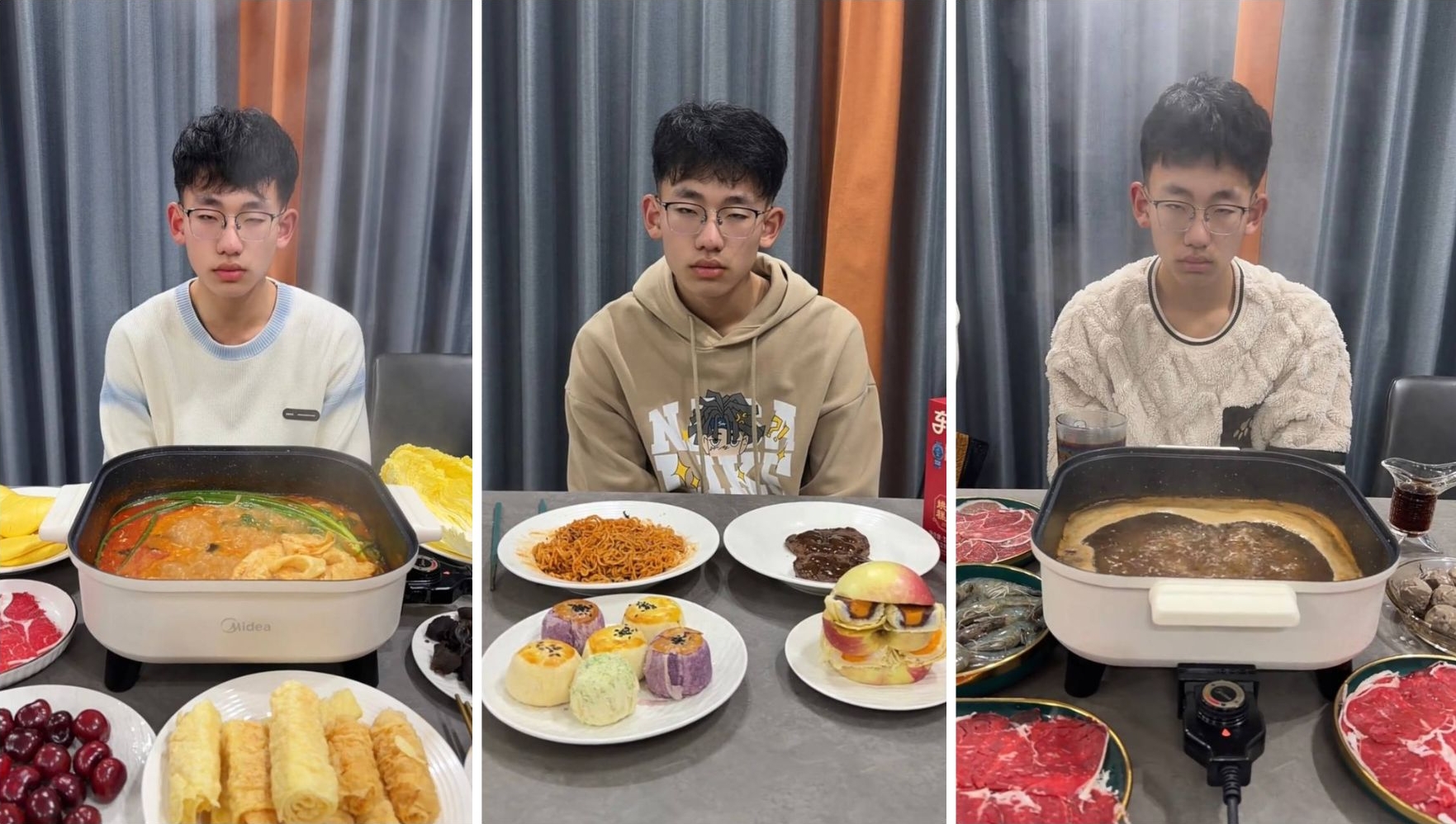 Однажды утром ее сонный сын обнаружил на столе рыбный суп и танхулу — китайский десерт из фруктов в карамели на палочке. В другом видео мама подала ему барбекю и лапшу с морепродуктами. Среди других запоминающихся завтраков были дуриан с говяжьим хот-потом, клубника с китайскими пельменями на пару сяолунбао и тушеные куриные лапки с колой.
