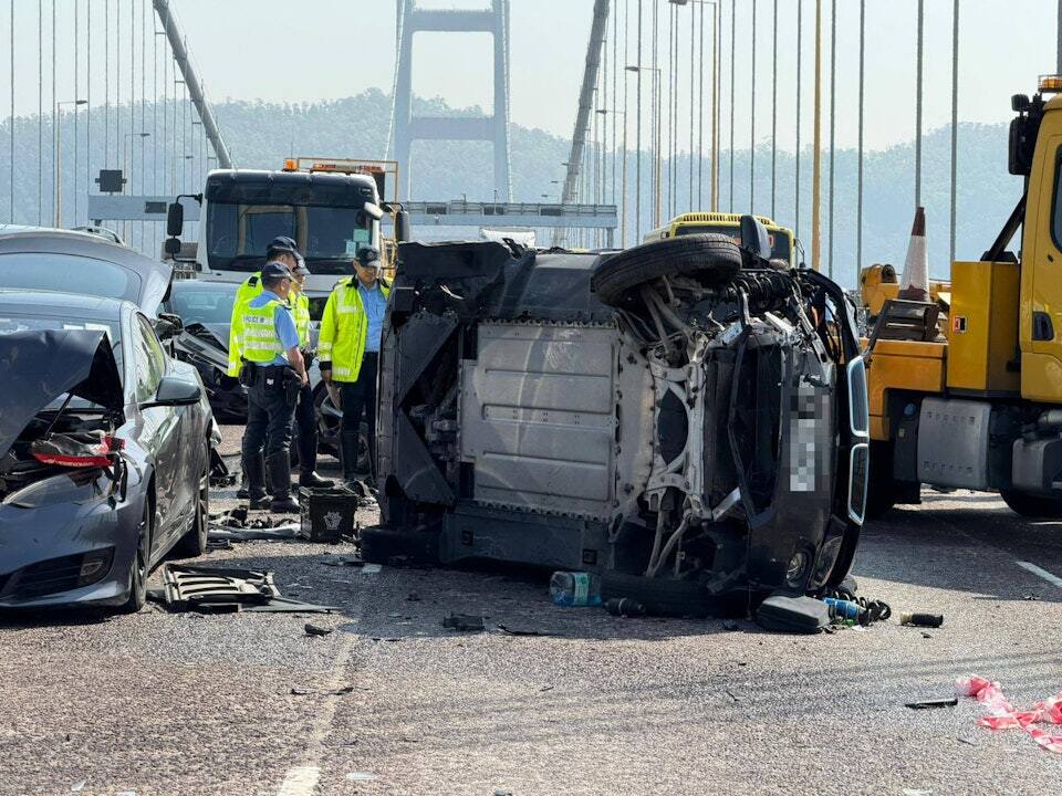 — На мосту в Гонконге столкнулись не менее 10 машин. Утром 12 марта в Гонконге на мосту Цинма по направлению к аэропорту столкнулись не менее десяти автомобилей. По предварительным данным, пострадали как минимум десять человек, двое были заблокированы в машинах. Очевидцы заметили на месте происшествия перевернутый автомобиль BMW, из еще одной легковой машины шел густой дым. Транспортный департамент Гонконга сообщил, что из-за ДТП на части полос магистрали движение в сторону аэропорта остается ограниченным. Образовалась большая пробка, многие пассажиры опоздали на рейсы. Позднее власти уточнили, что трасса была открыта.