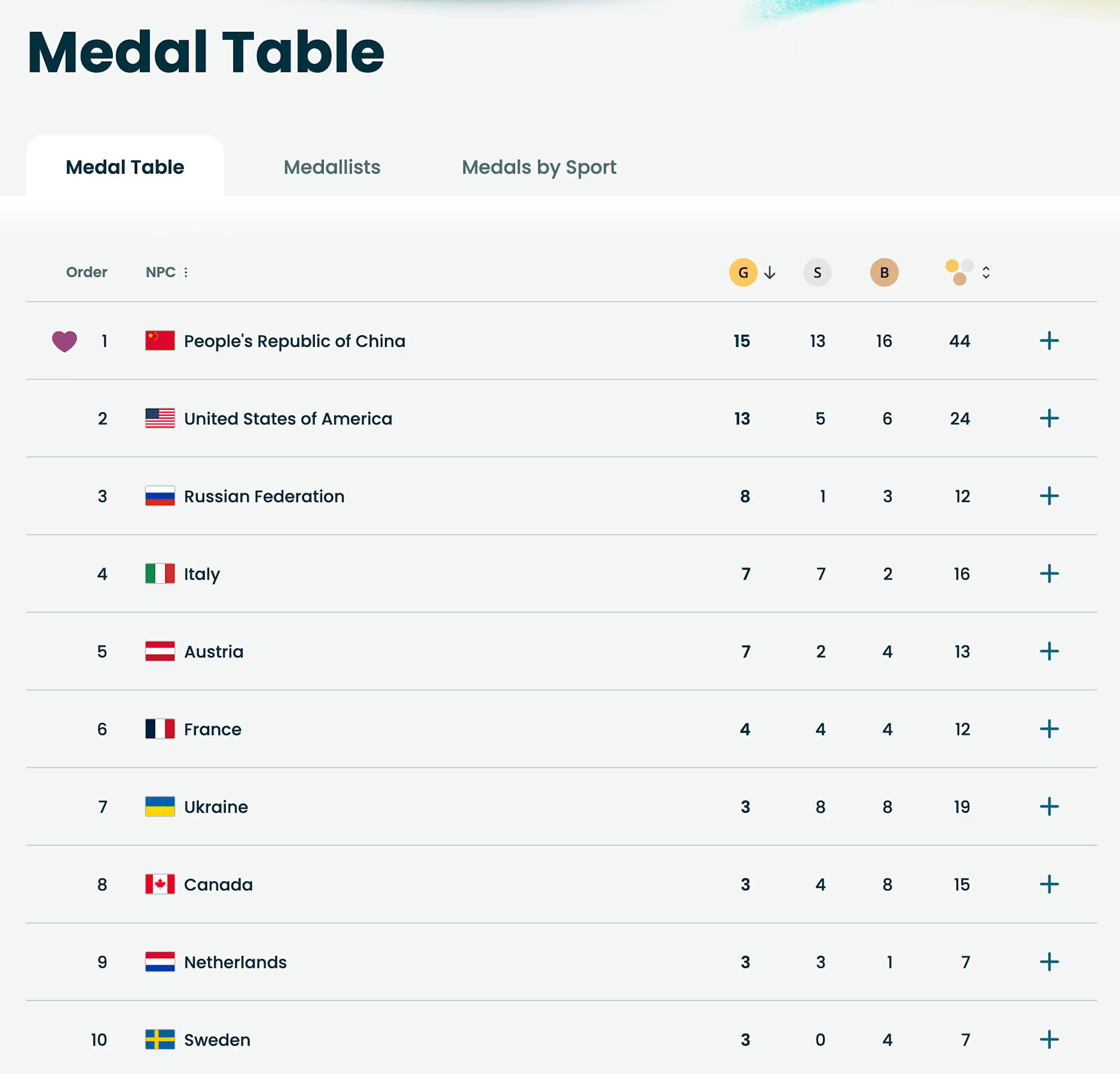 — Китайская сборная заняла первое место в медальном зачете Паралимпиады. Сборная КНР одержала победу в медальном зачете на зимних Паралимпийских играх 2026 года в Милане и Кортина-д’Ампеццо как по числу золотых, так и по общему количеству медалей. Китайские спортсмены завоевали 15 золотых, 13 серебряных и 16 бронзовых медалей. Это лучший результат Китая на зимней Паралимпиаде за рубежом. Лучше команда выступала только на домашней Олимпиаде в Пекине в 2022 году: 18 золотых и 61 медаль в общем. На втором месте медального зачета США: 13 золотых, 5 серебряных, 6 бронзовых. Сборная России завершила Игры на третьем месте. Шесть допущенных российских спортсменов завоевали 8 золотых, 1 серебряную и 3 бронзовые. Впервые за 12 лет они выступали с флагом и гимном. Зимние игры проходили в Милане и Кортина-д’Ампеццо с 6 по 15 марта.