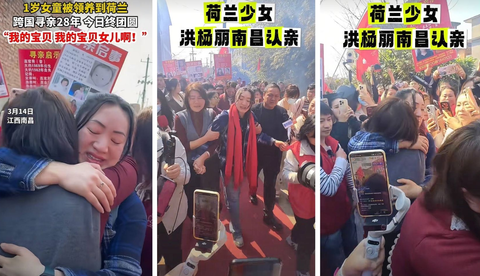 Долгожданная встреча состоялась 14 марта 2026 года в Наньчане. Родители Хун не смогли сдержать слез, увидев дочь. Семья устроила праздничный банкет и запустила фейерверки. Биологический отец подарил Хун золотой браслет и нефритовый кулон. Он рассказал, что всю жизнь винил себя в случившемся: он не осмелился ни перечить отцу, ни заявить о случившемся в полицию.